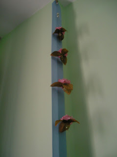 Aqui dois exemplos com pingente e um fio de flor com uma fita de tecido para quinas em paredes: